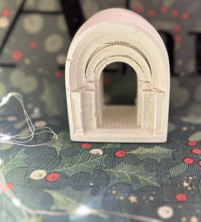 As a big lover of architecture I was inspired by Lady of Lourdes Parish entrance to create this arch decoration.