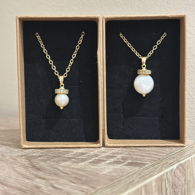 This elegant necklace features a delicate gold chain with a stunning pearl pendant, accented by shimmering gemstones. Crafted from high-quality materials, it combines sophistication and charm, making it perfect for both everyday wear and special occasions. Its versatile design allows it to elevate any outfit, making it an ideal gift for anniversaries, birthdays, or holidays.