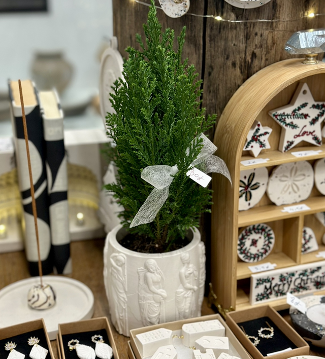 The flower pot is handmade from eco-friendly, non-toxic Jesmonite material. Jesmonite is a very versatile material that has many benefits as durability, fire resistance,  consistent quality, UV stable, water resistant, freeze resistant and impact resistant. The material also has a feeling like marble to the touch.