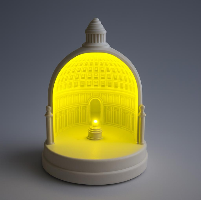 The Pantheon is handmade from eco-friendly, non-toxic Jesmonite material. Jesmonite is a very versatile material that has many benefits as durability, fire resistance, consistent quality, UV stable, water resistant, freeze thaw resistant and impact resistant. The material also has a feeling like marble to the touch.