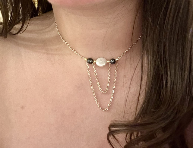 Materials: 18k gold plated stainless steel necklace, gold beads, hematite beads