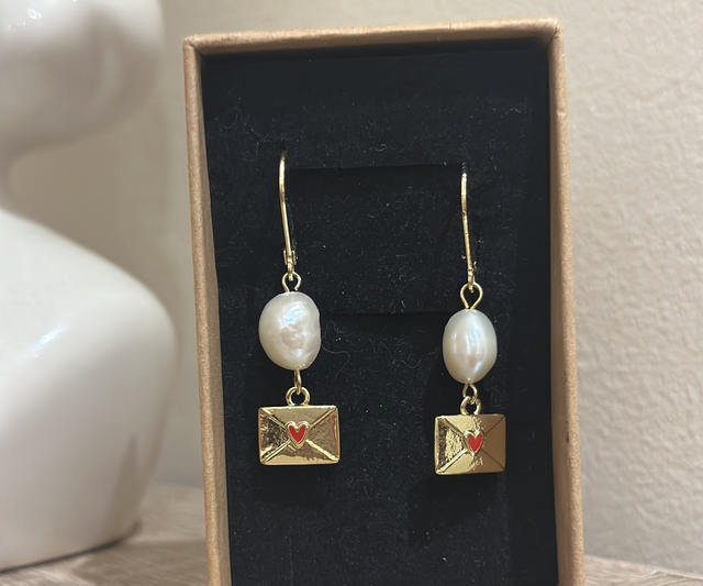 Uncover the ideal Valentine’s gift with our Love Letters Earrings. Handmade from 18k gold-plated brass, these lightweight earrings are perfect for any occasion. Featuring a charming envelope design with a delicate red heart accent, they add a unique touch to any outfit. Each pair comes beautifully packaged in the included box, making them ready for gifting.