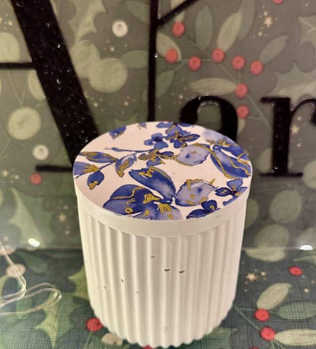 This beautiful candle holder features our new collection pattern- blue flowers & leaves with a touch of gold. The candle holder it’s a perfect addition to any home and it’s a great gift for any occasion. It’s also a smart choice as a wedding decoration or favour. It comes with a tealight and can be gift wrapped for an extra charge of 3£.