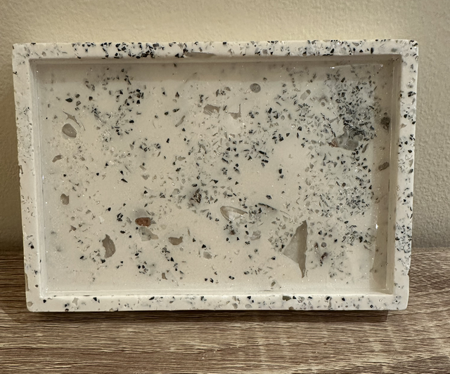Made from versatile Jesmonite, this durable tray features a resin top and is perfect for jewellery, candles, or storing items like keys and coins. It’s UV stable, water-resistant, and impact-resistant. Gift wrapping is available for an additional £3.50.