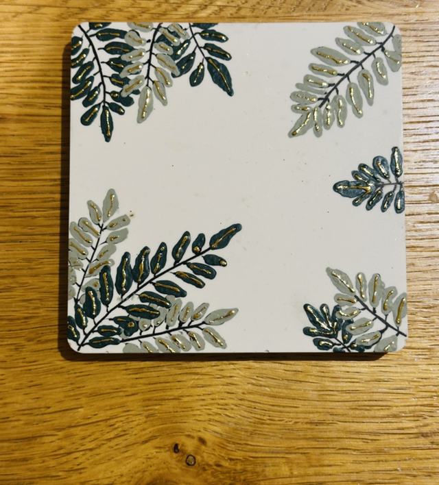 Inspired from nature, this beautiful coaster is hand painted with mineral paint and has a touch of gold. Mineral paint it’s durable, resistant to peeling and flakingeco-friendly, water resistant, UV resistantacid and alkalis resistant.